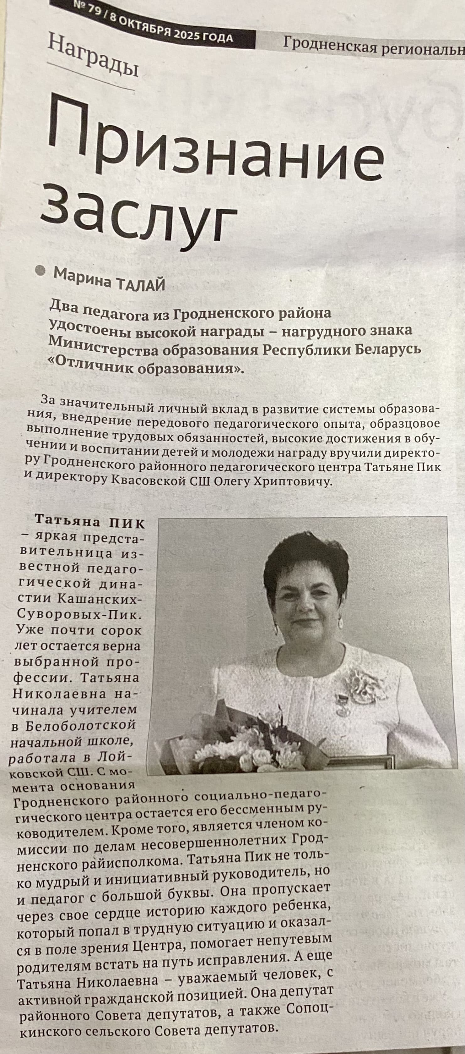 Признание заслуг
